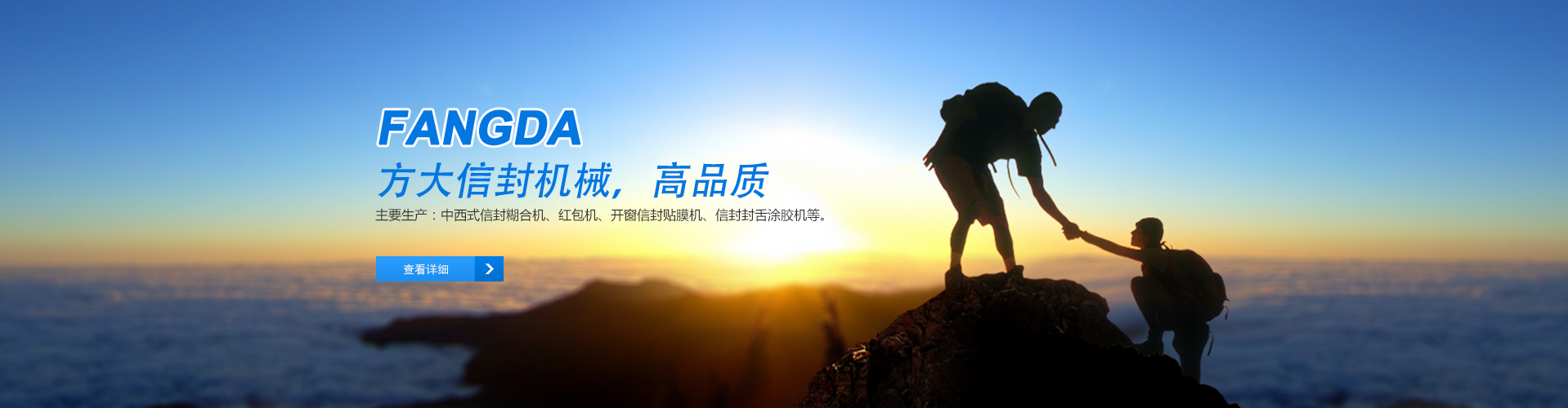 瑞安方大信封機(jī)械有限公司,是專業(yè)生產(chǎn)信封機(jī)糊合設(shè)備系列產(chǎn)品的企業(yè),主要產(chǎn)品有:中西式信封糊合機(jī)、紅包機(jī)、開窗信封貼膜機(jī)、信封封舌涂膠機(jī)等。實(shí)力來自規(guī)模,品質(zhì)源自專業(yè)。我廠擁有專業(yè)老練的工程設(shè)計(jì)人員,經(jīng)驗(yàn)豐富的生產(chǎn)安裝人員,嚴(yán)謹(jǐn)認(rèn)真的質(zhì)量檢驗(yàn)人員,從而保證了所生產(chǎn)機(jī)械的優(yōu)良品質(zhì)。此外,我廠也將從技術(shù)上、性能上不斷改進(jìn)提高,以更好的滿足客戶的需求。“客戶至上,服務(wù)為本”是我廠長期一貫的服務(wù)理念,從安裝、測試、保養(yǎng)、維修等售后服務(wù),我們會(huì)給予客戶充足的信息資訊與技術(shù)支持,因此在業(yè)界獲得良好的口碑及信譽(yù),您的滿意是我們的榮耀!歡迎您來電查詢、來人參觀,我們一定能給你滿意的答復(fù)!秉承“顧客至上,銳意進(jìn)取”的經(jīng)營理念,堅(jiān)持“客戶為先”的原則為廣大客戶提供溫馨的服務(wù)。歡迎惠顧!
